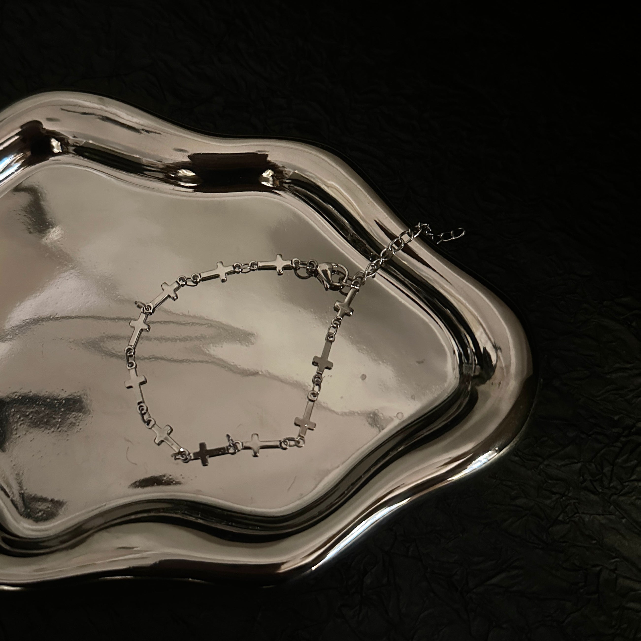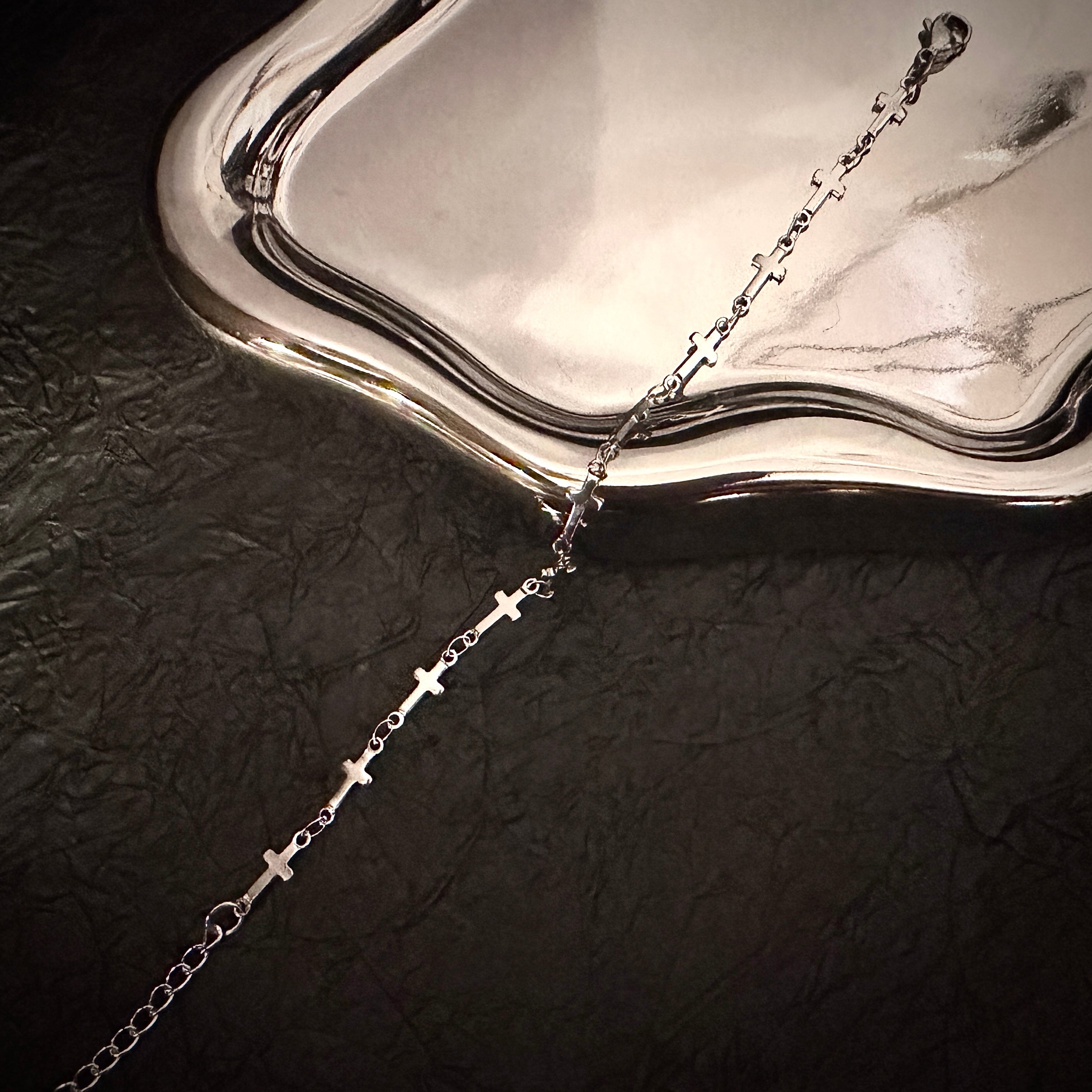 Introducing the Cross Chain Bracelet - a stylish and meaningful addition to your jewelry collection. With its delicate cross chain design, this bracelet will add an elegant touch to any outfit. Wear it as a daily reminder of strength and blessings. Order now and be blessed!