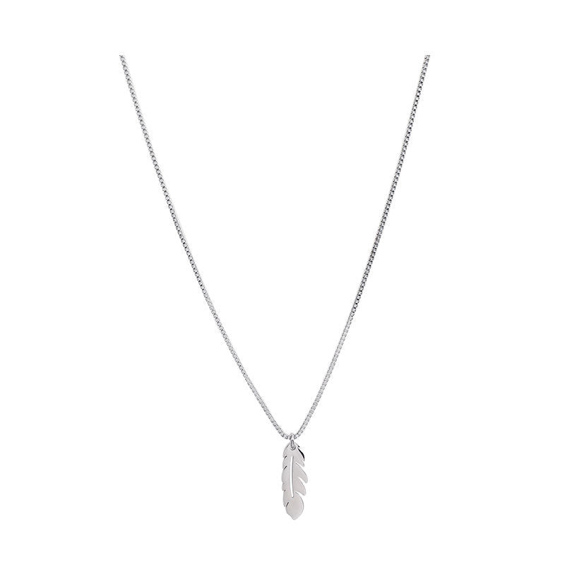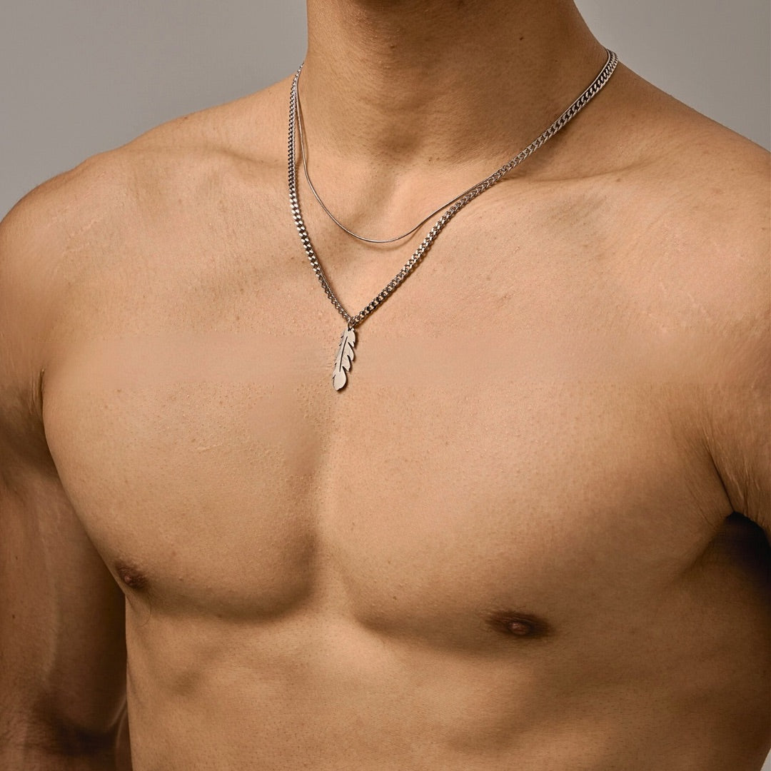 Showcase your style with this stunning box chain and rolo chain necklace. Featuring a feather pendant, it's the perfect symbol of freedom. This minimal yet eye-catching design is ideal for urban styling. Look sharp and stay fly with this double chain necklace.