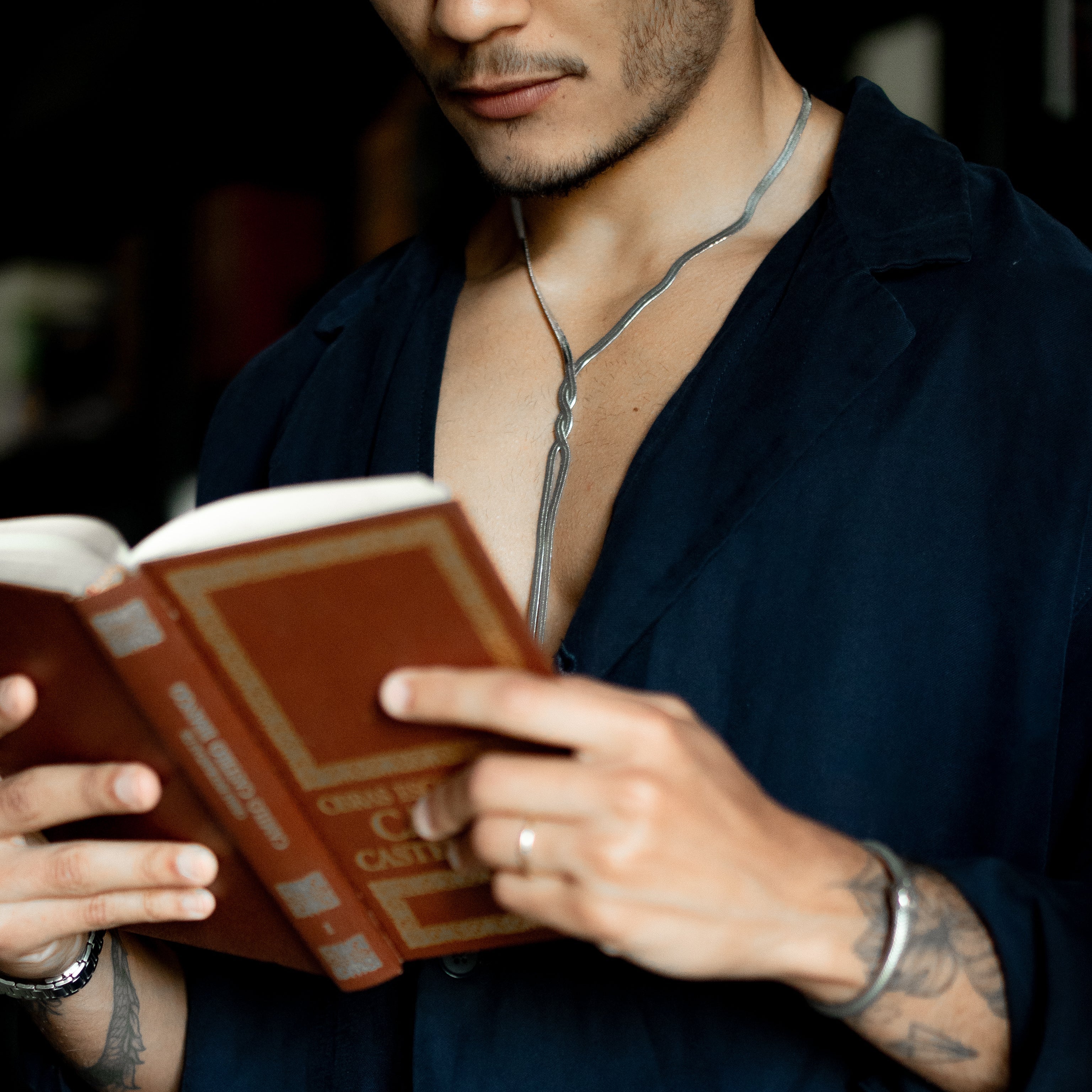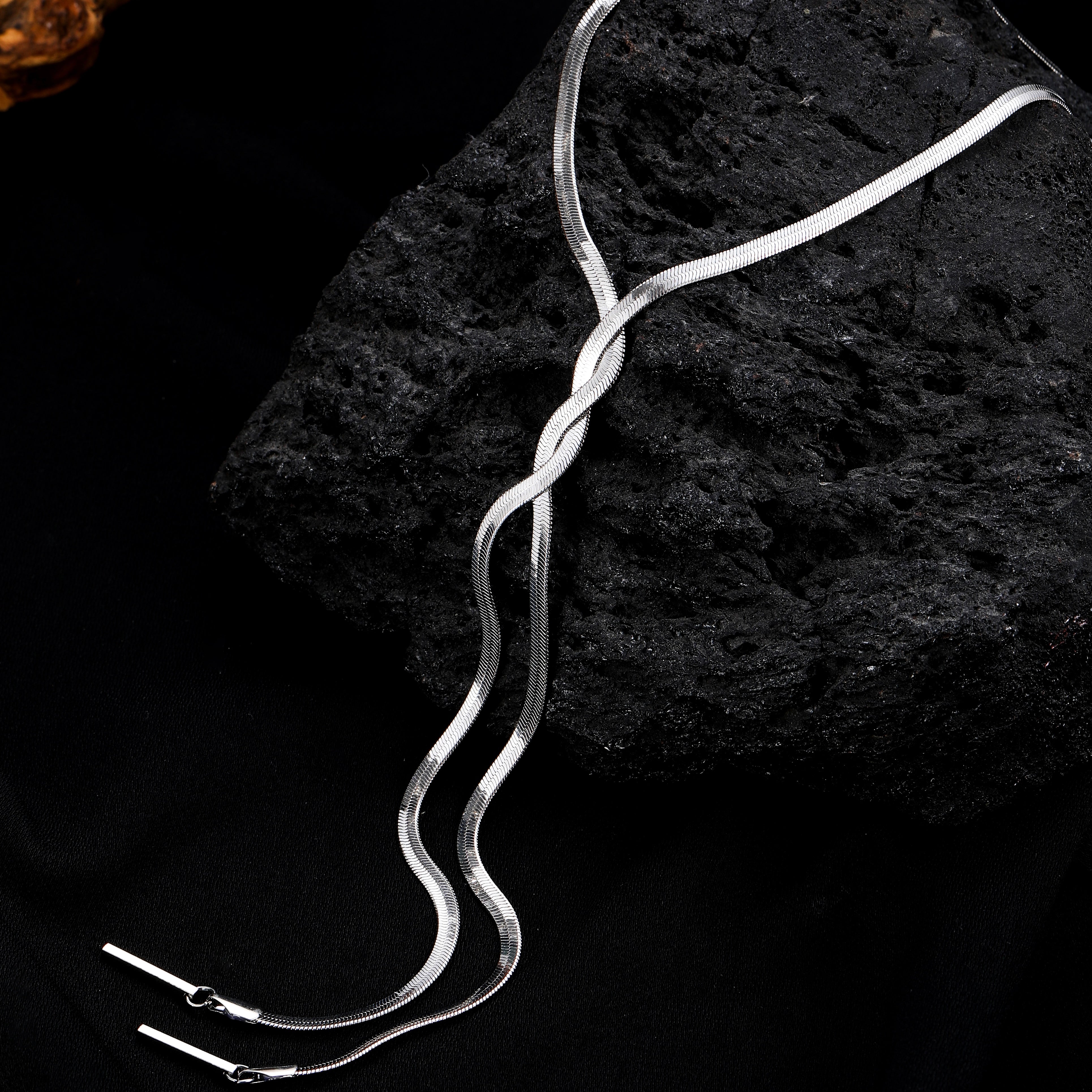 Designed for man, this long, flat snake chain necklace exudes confidence and sophistication. It offers a sleek, fluid look that complements any outfit—whether casual or formal. Lightweight yet durable, this statement piece is perfect for daily wear, reflecting strength and timeless style.