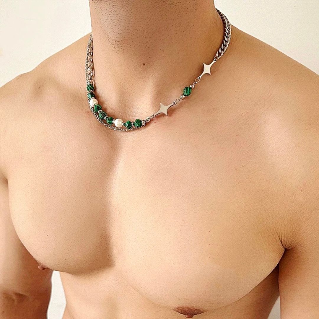 Elevate your style with Dholt Design's Powerful Mixed Chains necklace! Featuring multiple chains and sparkling gemstones, this accessory will add a touch of glamour to any outfit. Make a statement and stand out with the eye-catching stars. Upgrade your look with this must-have piece!