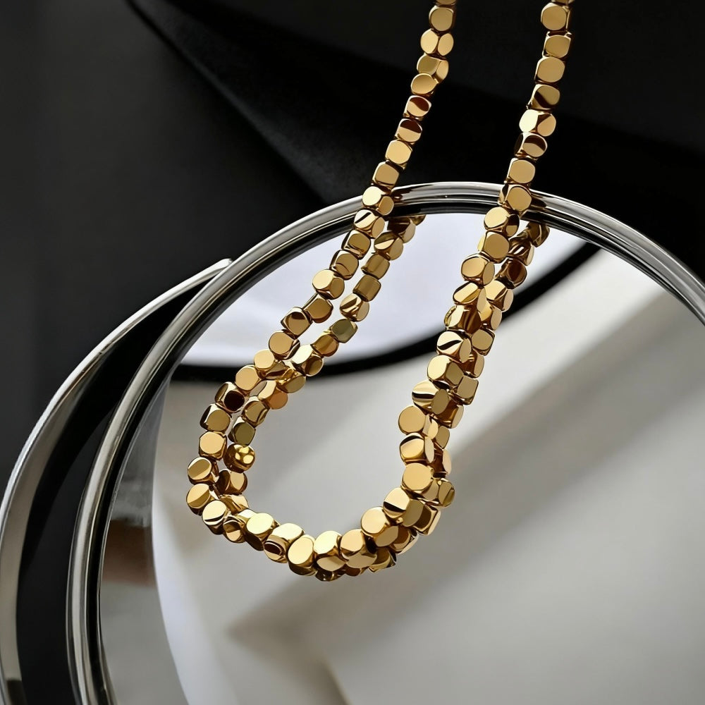 Experience luxury with our Rich Thousand Cube chain! Inspired by the iconic thousand cube design, each small cube is crafted from top-quality hematite for a stunning and durable accessory. Elevate your style with the perfect combination of elegance and modernity.